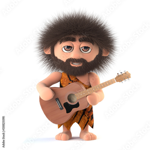 3d Funny Cartoon Spaceman Astronaut Playing An Acoustic Guitar In