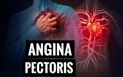 Angina also known as angina pectoris is chest pain or pressure usually due to not enough blood flow to the heart muscle.