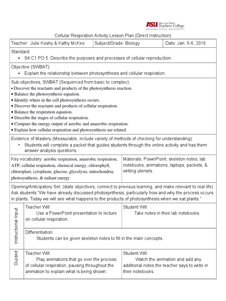 Cellular Respiration Animation Notes Key