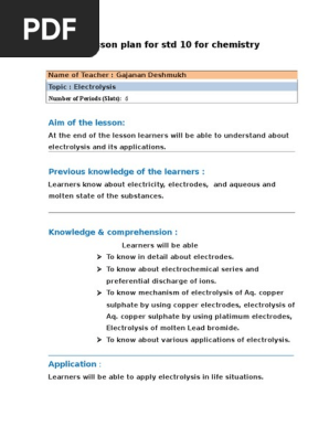 Electrolysis Lesson Plan