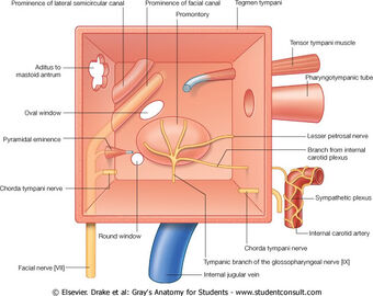 Anatomically the course of the facial nerve can be divided into two parts. The second branchial arch gives rise to the muscles of facial expression in the seventh and eighth week. To innervate these muscles facial nerve courses across the region that eventually becomes the middle ear. An image depicting the facial nerve can be seen below.