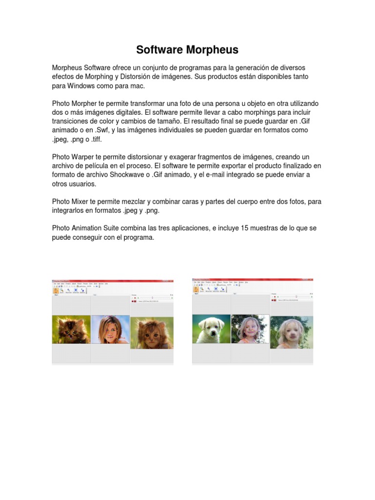 The all in one animation suite includes morpheus photo morpher v315 morpheus photo warper v315 morpheus photo mixer v315 as well as all 15 sample morphs warps and mixes. If you like animation youll love morpheus photo animation suite. Pcmac disc the reason i bought this morpheus animation product was because i believed from looking at the cover that you could use it to make cartoon versions of a regular photograph of someone. This mac app is an intellectual property of morpheus software.